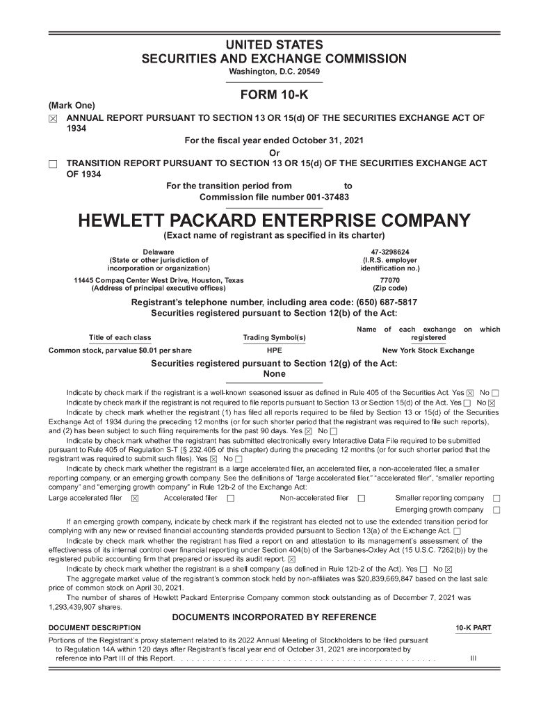 Hewlett Packard Enterprise Company(HPE)2021财年年度报告(英文版).pdf