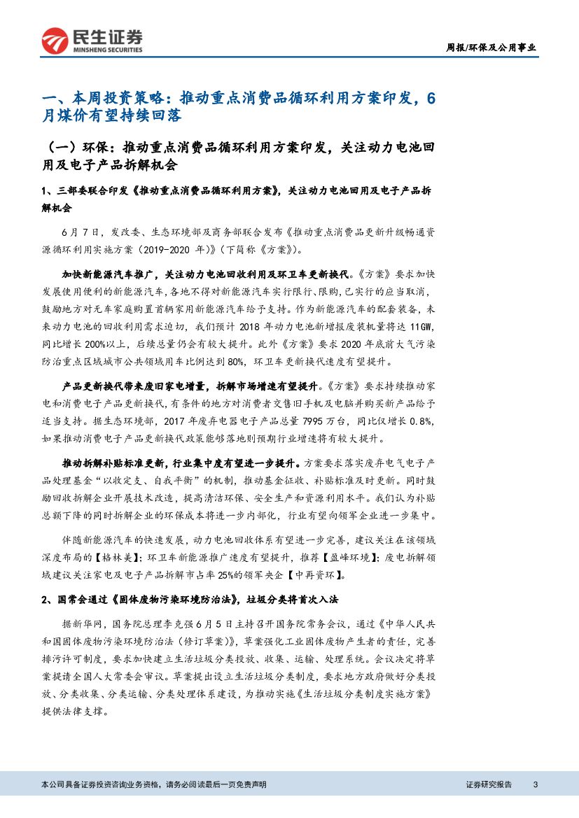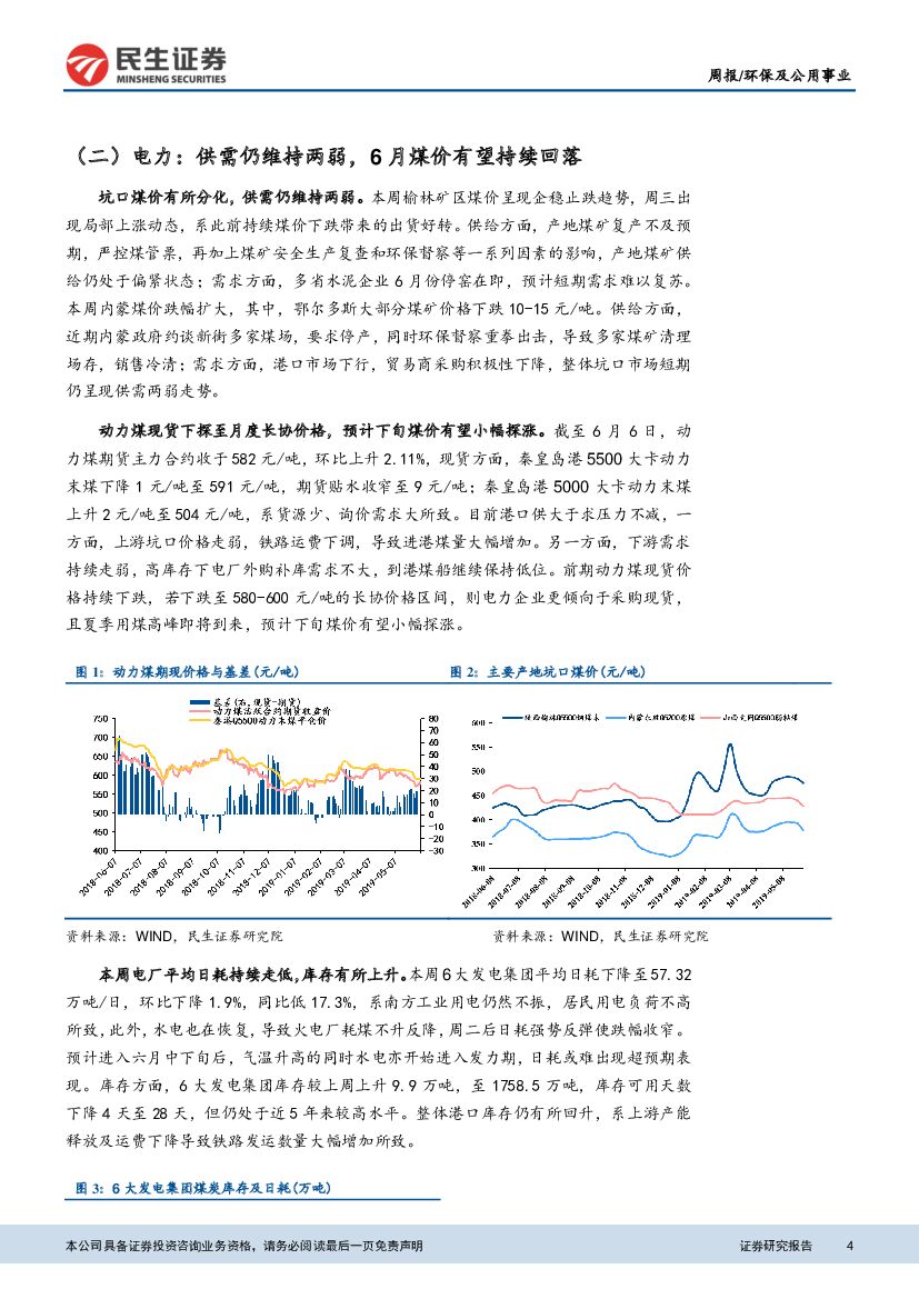 民生证券:环保及公用事业周报:推动重点消费品循环利用方案印发,6月煤价有望持续回落.pdf