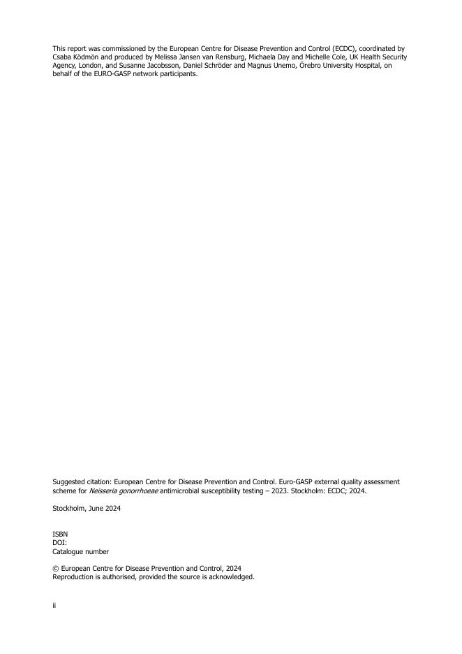 欧洲疾控中心:2024年欧洲GASP淋病奈瑟菌抗菌药物敏感性试验外部质量评估方案报告(英文版).pdf