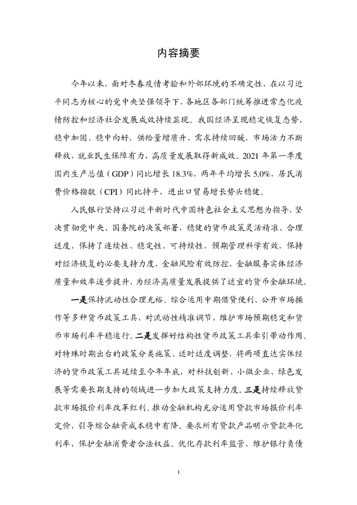 中国人民银行:2021年第一季度中国货币政策执行报告.pdf
