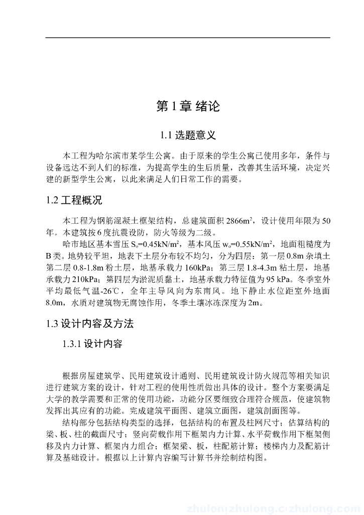 2866平米五层学生公寓结构计算毕业设计(Word.71页).doc