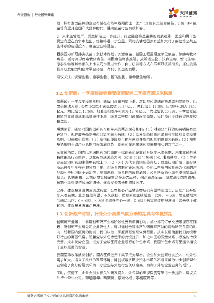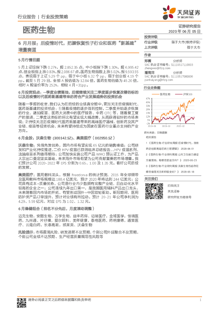 天风证券:医药生物6月月报:后疫情时代,把握恢复性子行业和医药“新基建”增量赛道.pdf