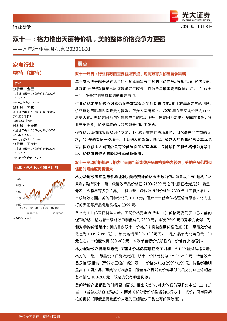 光大证券:家电行业每周观点-双十一:格力推出天丽特价机,美的整体价格竞争力更强.pdf