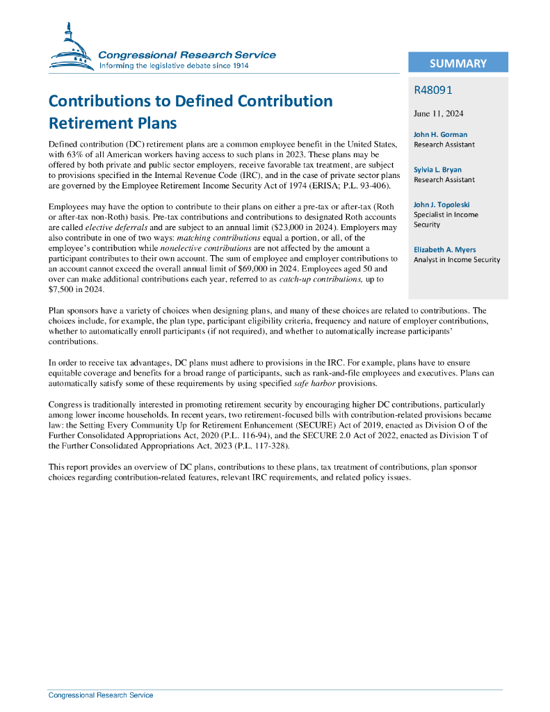 美国国会研究服务部:2024对固定供款退休计划的供款报告(英文版).pdf