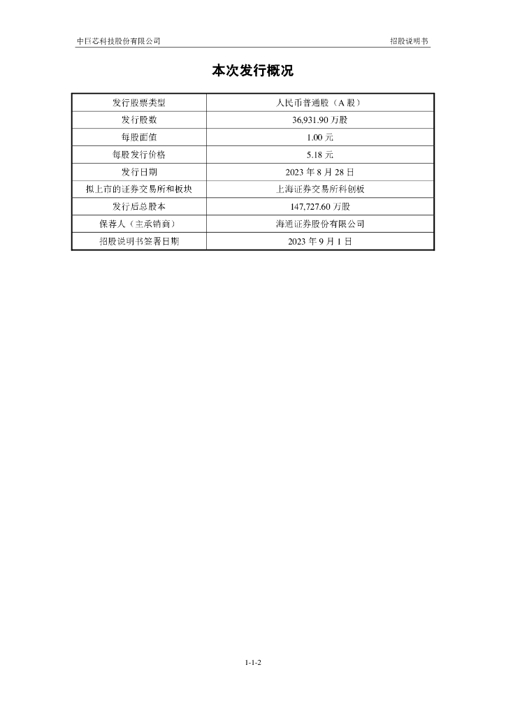 中巨芯科技股份有限公司科创板IPO上市招股说明书.pdf