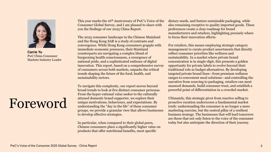普华永道:2025年全球消费者之声中国报告-新时代中国消费者:聚焦食品、健康与可持续发展(英文版).pdf