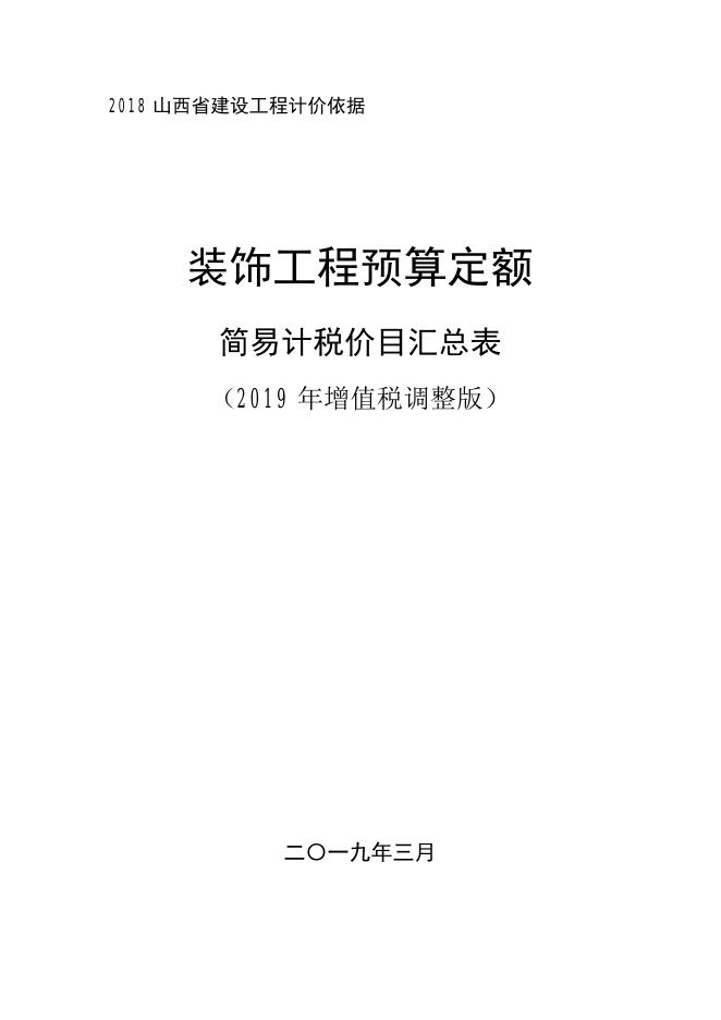 山西省装饰工程预算定额 简易计税价目汇总表(2019年增值税调整版).pdf
