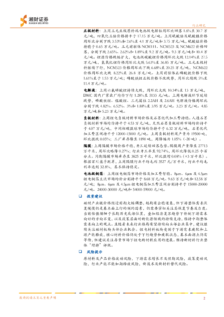 湘财证券:新材料行业周报:稀土价格企稳回升,锂价疲弱带动相关材料持续下行.pdf