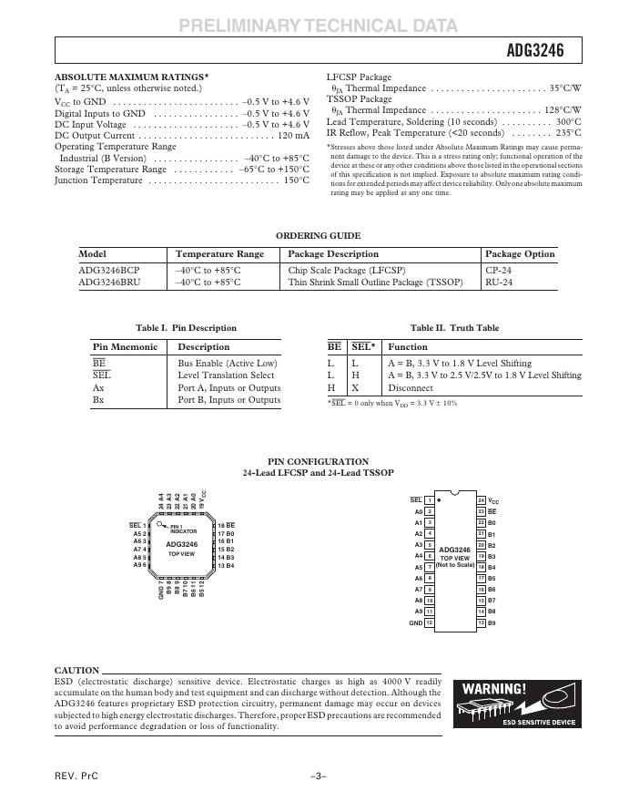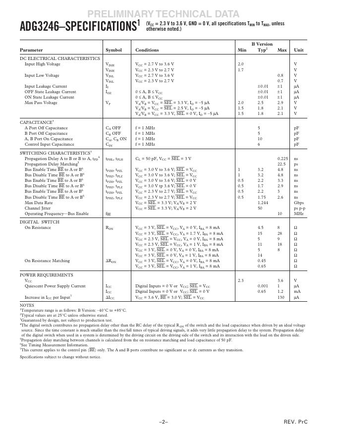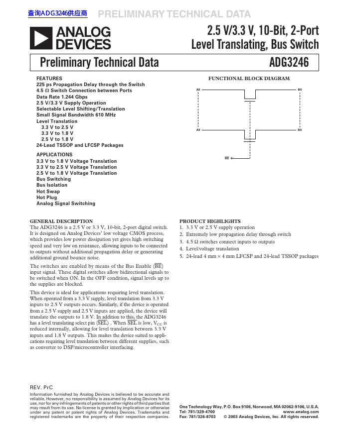 ANALOG DEVICES 2.5 V/3.3 V, 10-Bit, 2-Port Level Translating, Bus Switch ADG3246 数据手册.pdf
