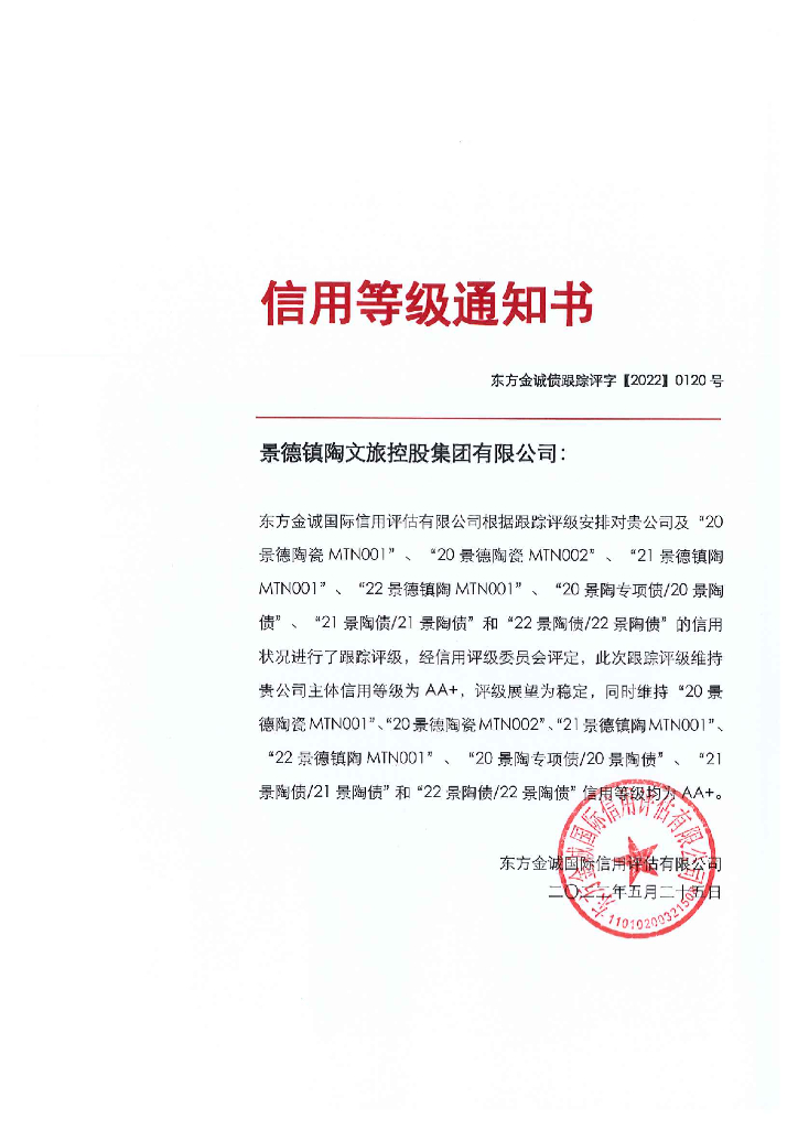 东方金诚:景德镇陶文旅控股集团有限公司主体及相关债项2022年度跟踪评级报告.pdf