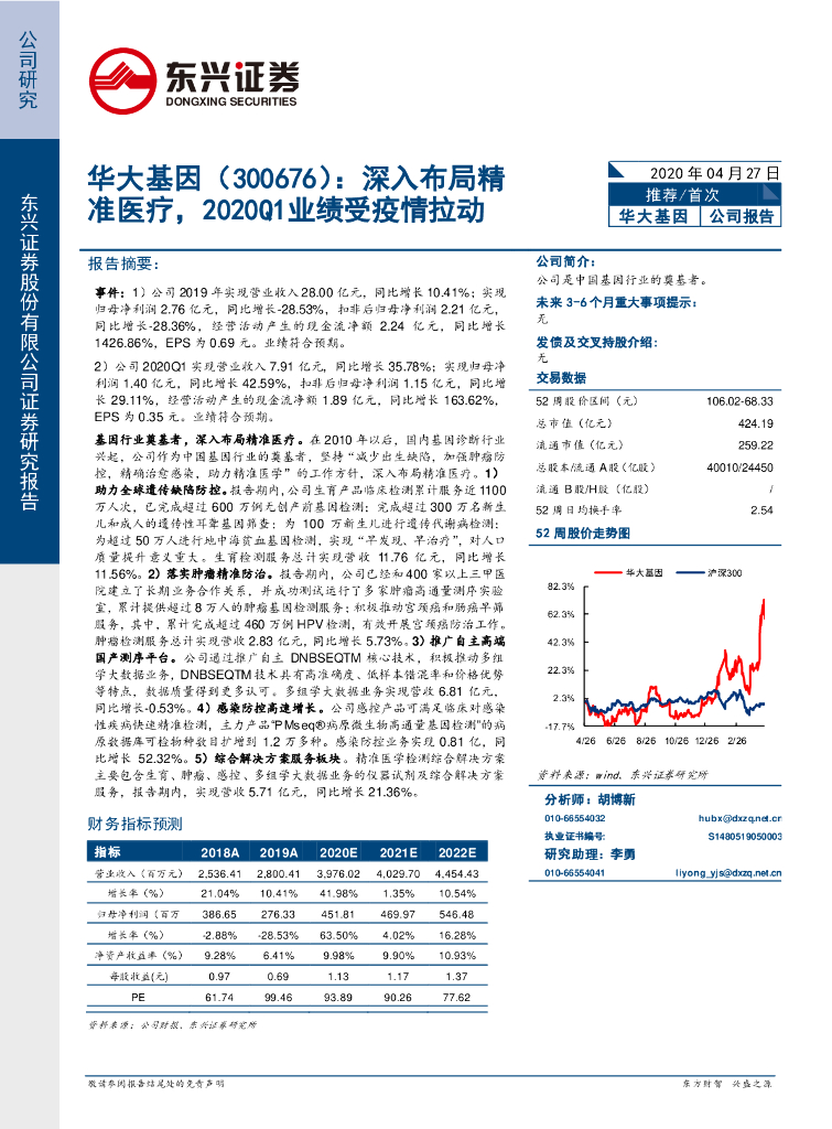 东兴证券:华大基因(300676)-深入布局精准医疗,2020Q1业绩受疫情拉动.pdf