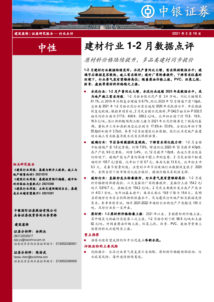 中银证券:建材行业1-2月数据点评:原材料价格陆续提升,多品类建材同步提价.pdf