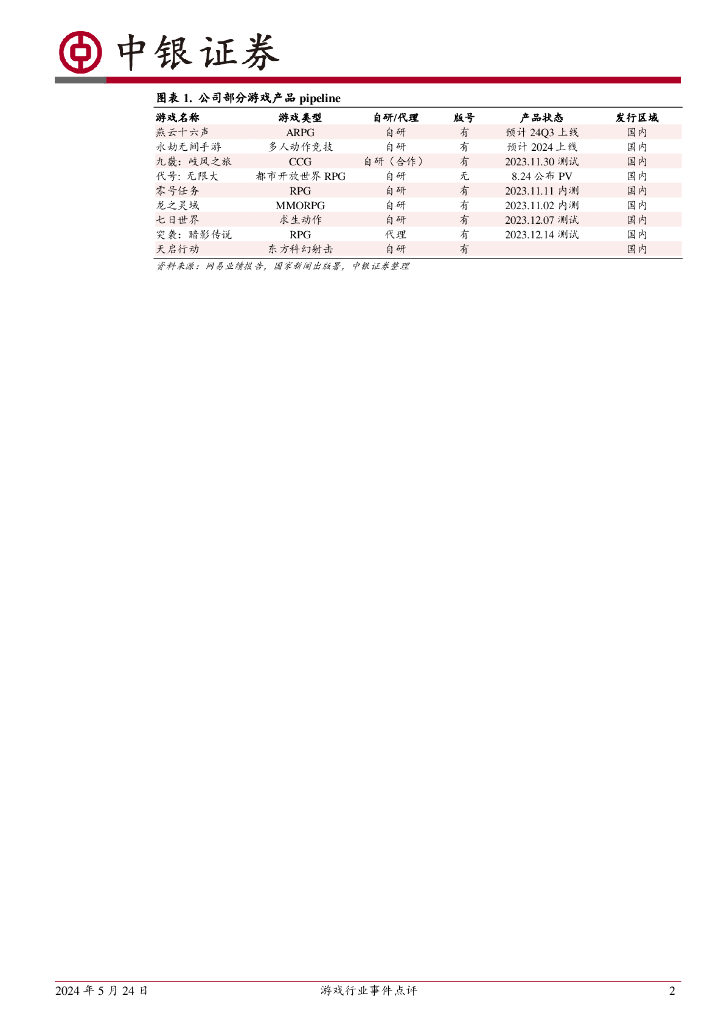 中银证券:游戏行业事件点评:网易24Q1:手游收入增长强劲,云音乐毛利率同比大增.pdf