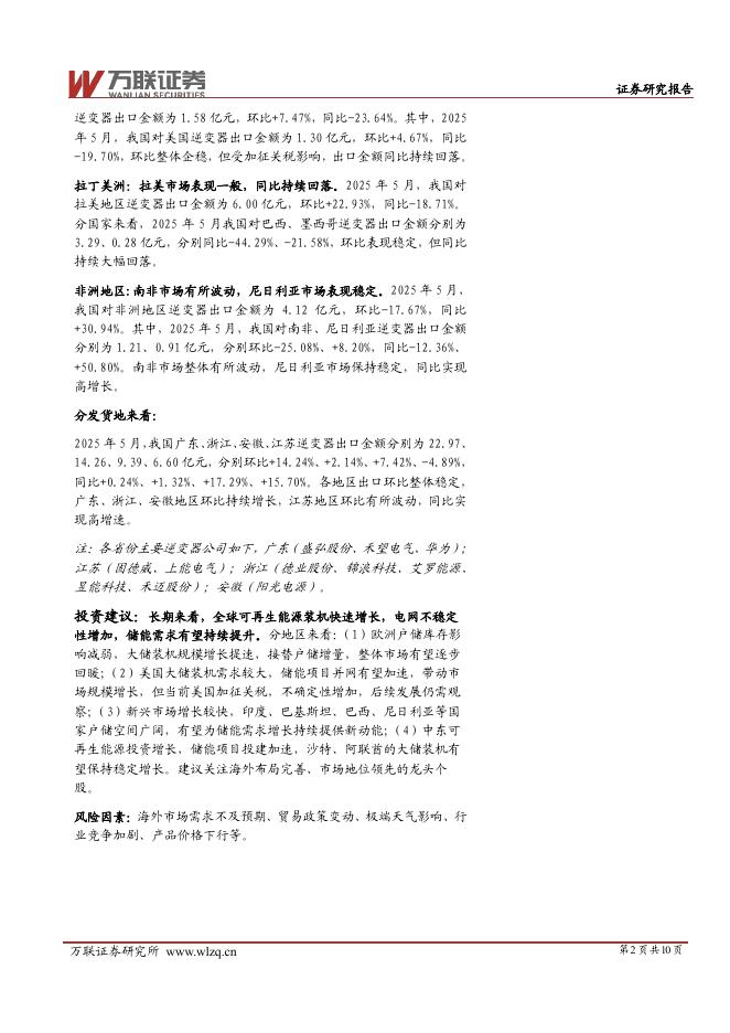 万联证券:电力设备行业跟踪报告:逆变器出口:5月出口整体稳定,亚洲市场保持高增长.pdf