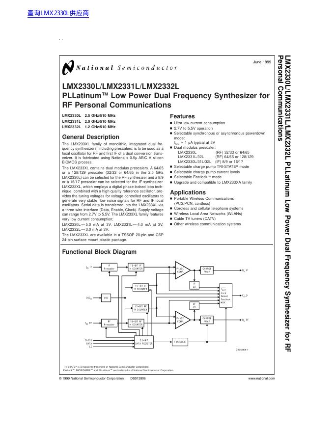National LMX2330L/LMX2331L/LMX2332L 数据手册.pdf