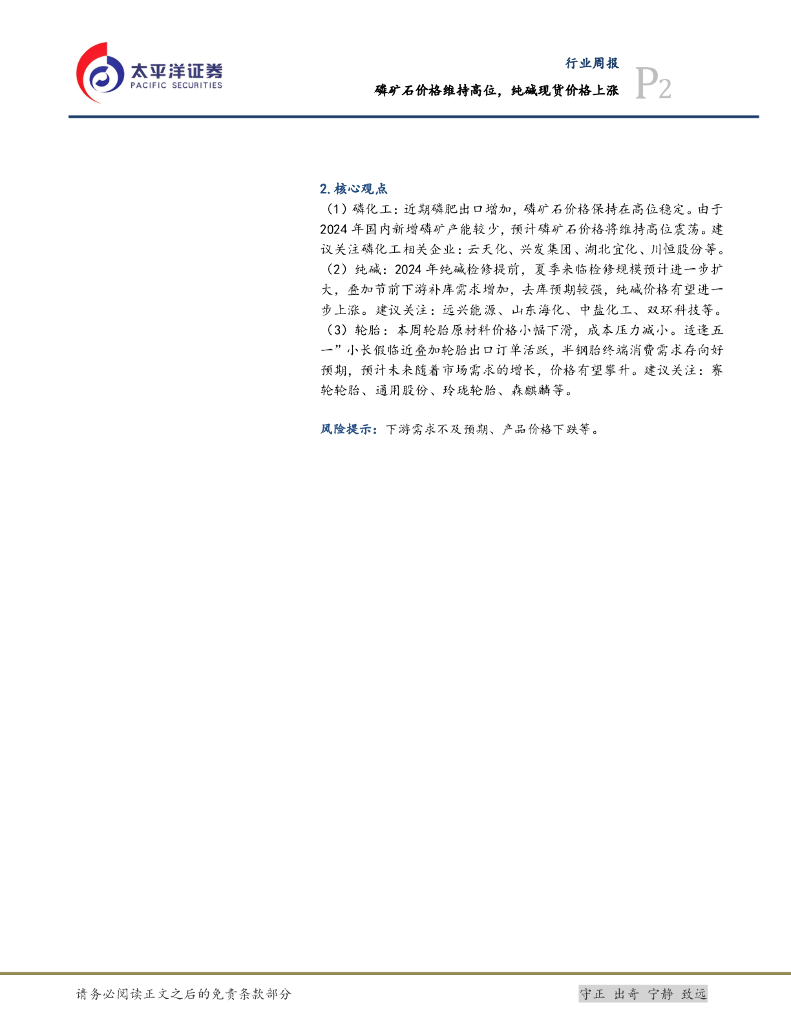 太平洋证券:基础化工行业周报:磷矿石价格维持高位,纯碱现货价格上涨.pdf
