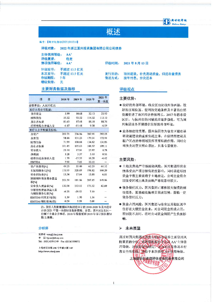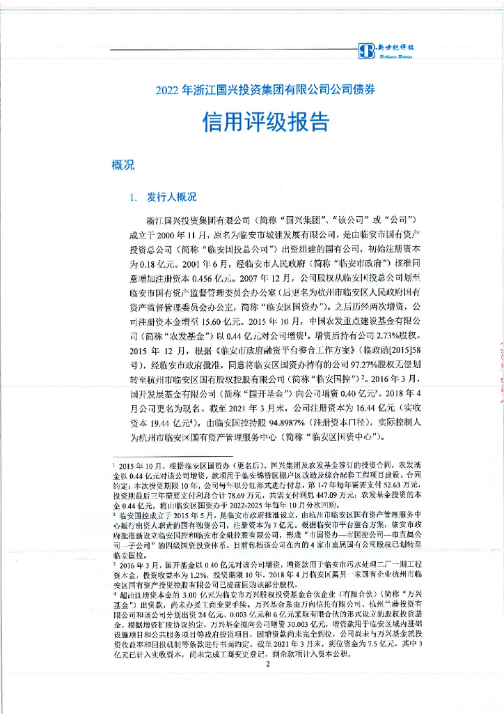 新世纪:2022年浙江国兴投资集团有限公司公司债券信用评级报告.pdf