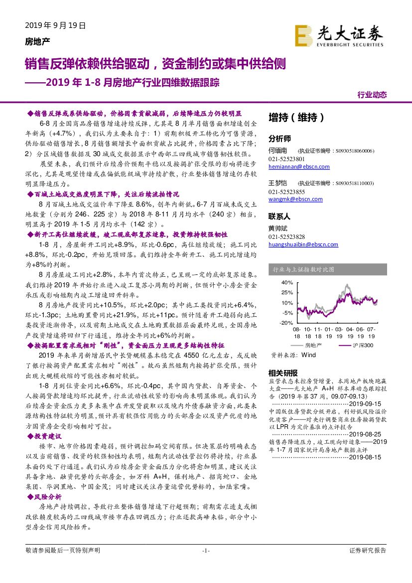 光大证券:2019年1-8月房地产行业四维数据跟踪:销售反弹依赖供给驱动,资金制约或集中供给侧.pdf