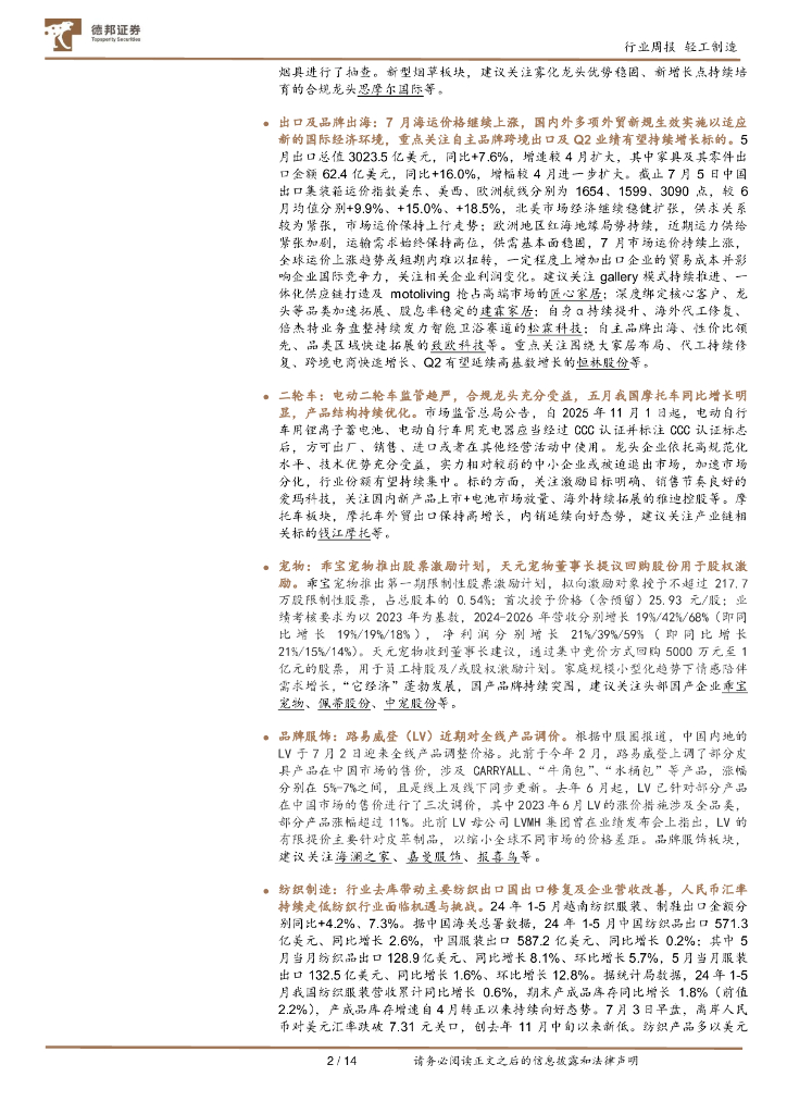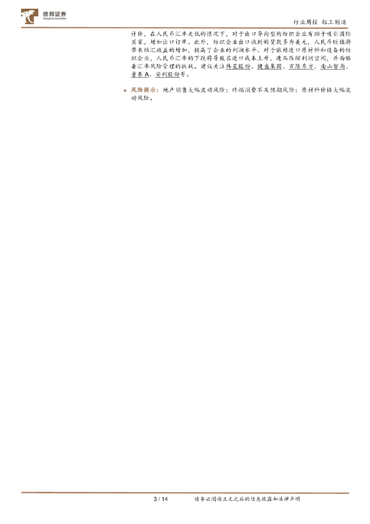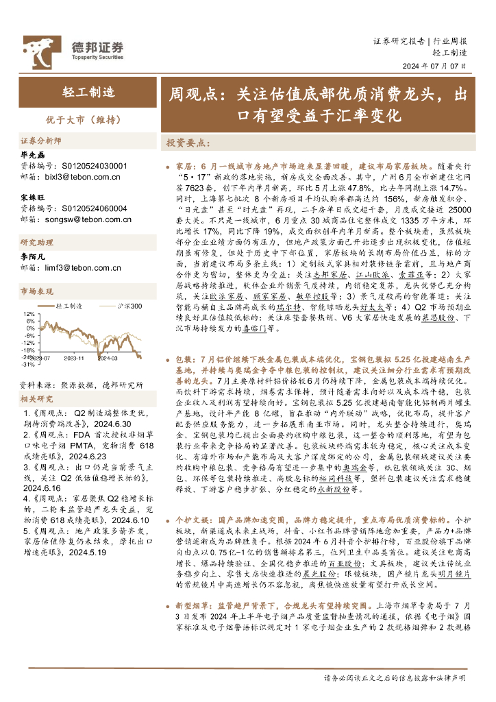 德邦证券:轻工制造行业周观点:关注估值底部优质消费龙头,出口有望受益于汇率变化.pdf