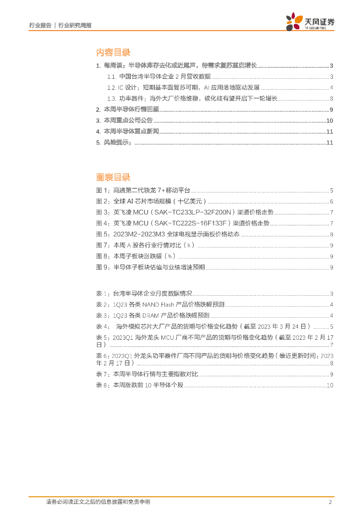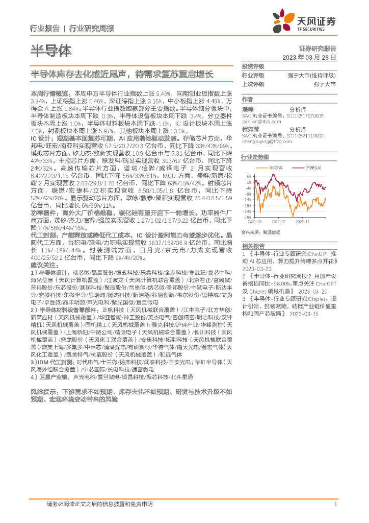 天风证券:半导体行业研究周报:半导体库存去化或近尾声,待需求复苏重启增长.pdf