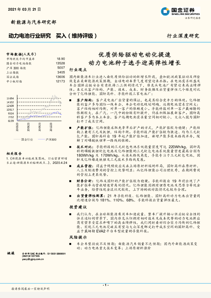 国金证券:动力电池行业研究:优质供给驱动电动化提速 动力电池种子选手迎高弹性增长.pdf