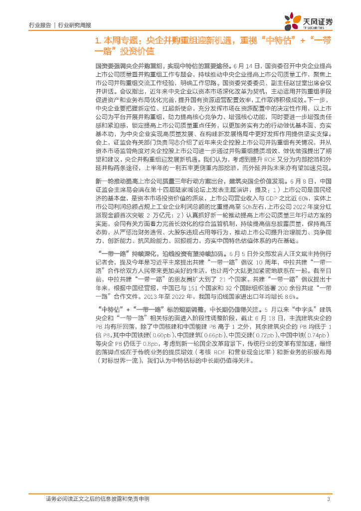 天风证券:建筑装饰行业研究周报:央企并购重组迎新机遇,重视“中特估”+“一带一路”投资价值.pdf