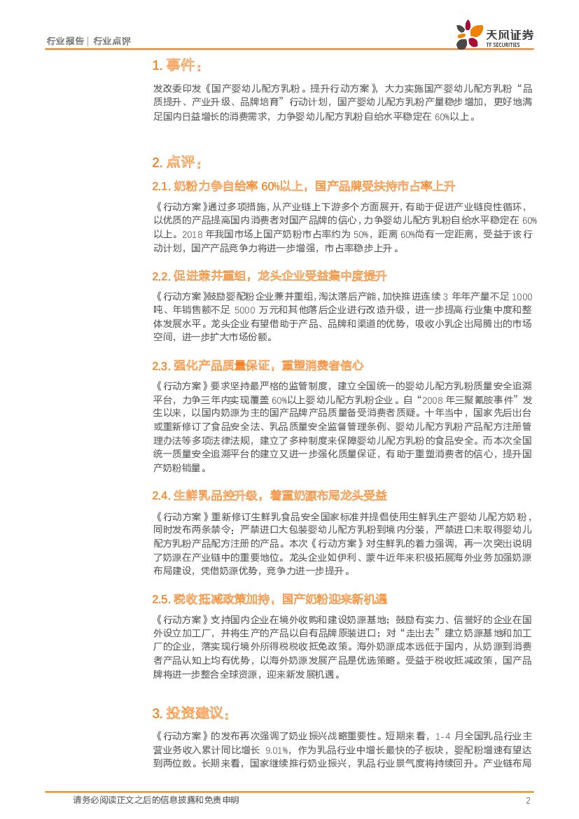 天风证券:食品饮料:《国产婴幼儿配方乳粉提升行动方案》点评-政策加持,国产奶粉迎来转机.pdf
