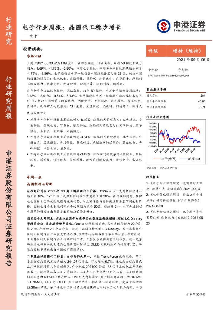 申港证券:电子行业周报:晶圆代工稳步增长.pdf