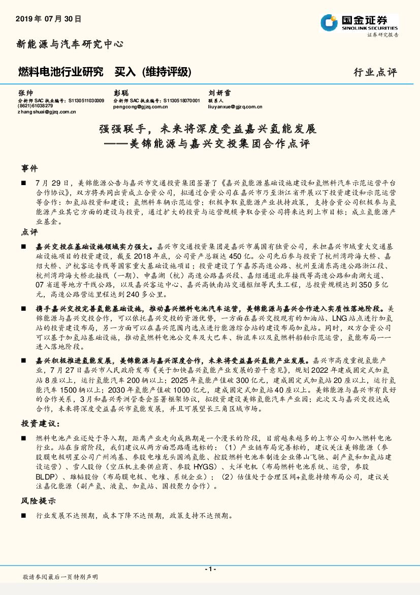 国金证券:燃料电池行业研究:美锦能源与嘉兴交投集团合作点评-强强联手,未来将深度受益嘉兴氢能发展.pdf