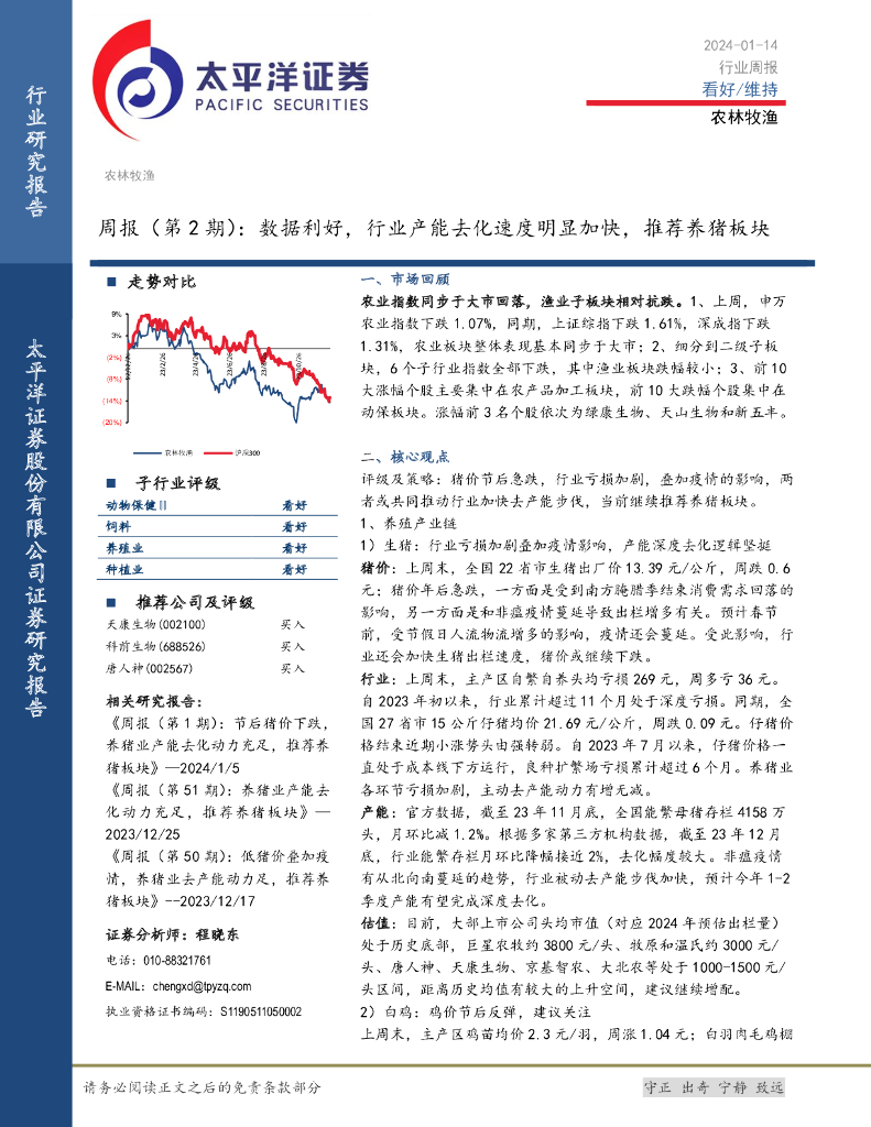 太平洋证券:农林牧渔周报(第2期):数据利好,行业产能去化速度明显加快,推荐养猪板块.pdf