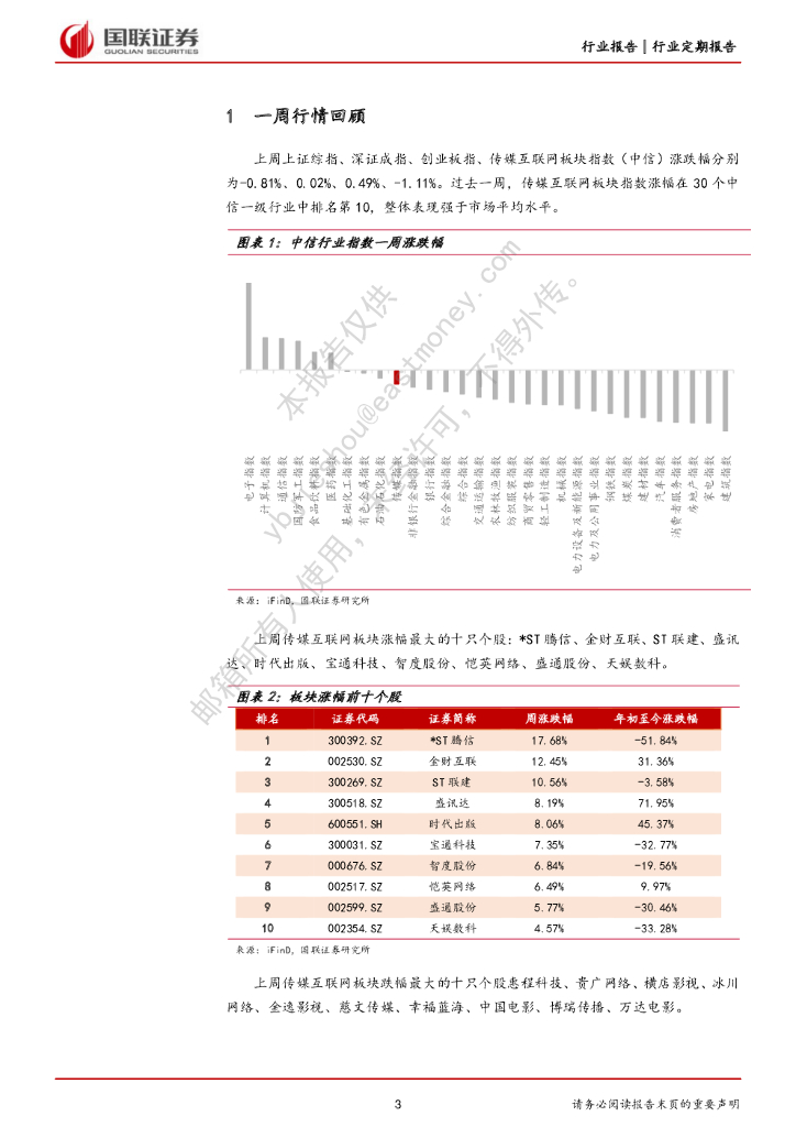 国金证券:传媒互联网产业行业研究:边走边看,等待机会