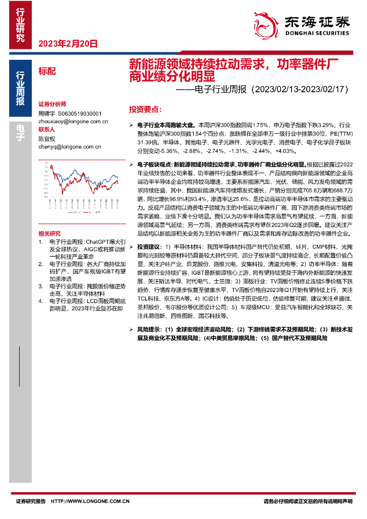 东海证券:电子行业周报:新能源领域持续拉动需求,功率器件厂商业绩分化明显.pdf