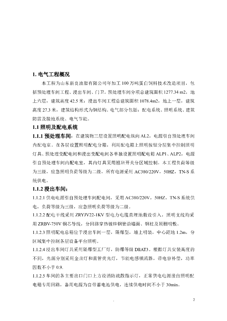 山东某有限公司年加工100万吨蛋白饲料技术改造项目电气施工组织.doc