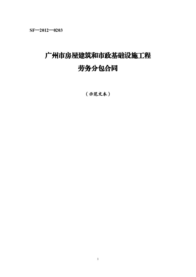 SF-2012-0203 广州市房屋建筑和市政基础设施工程劳务分包合同(示范文本).pdf
