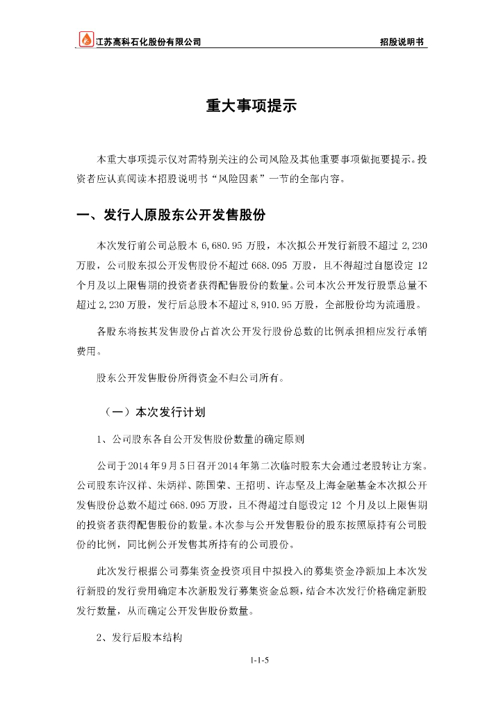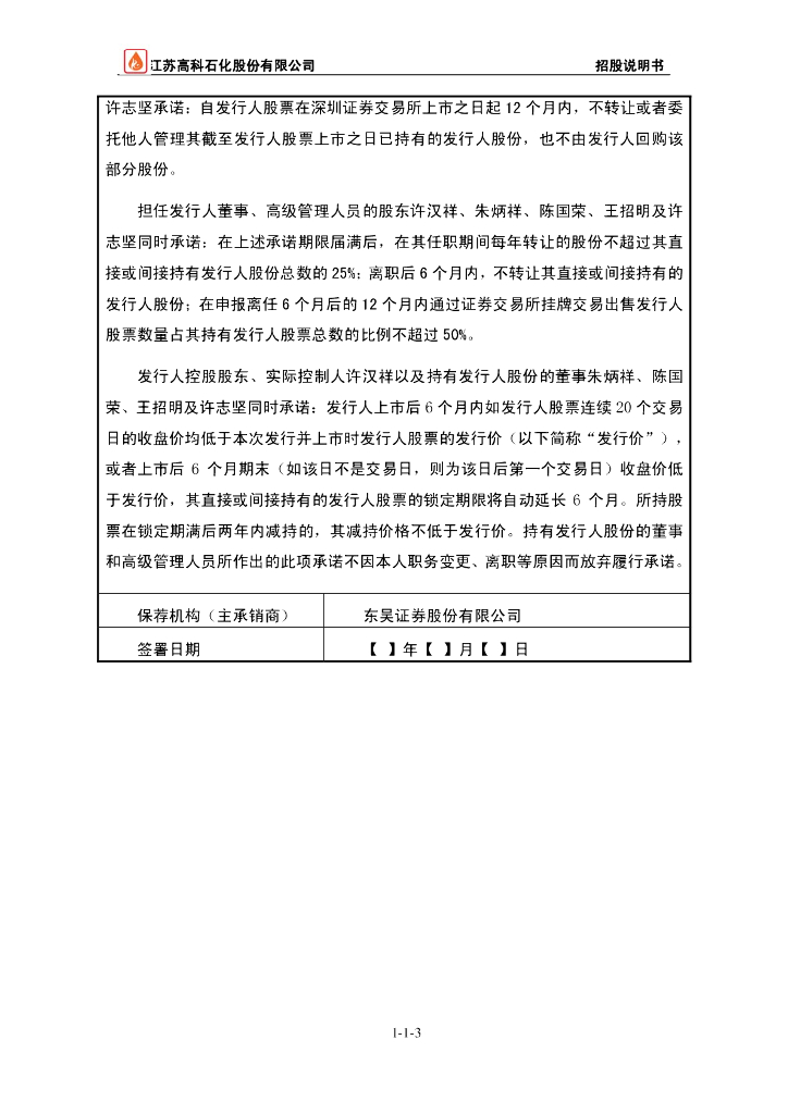 江苏高科石化股份有限公司深交所主板IPO上市招股说明书.pdf