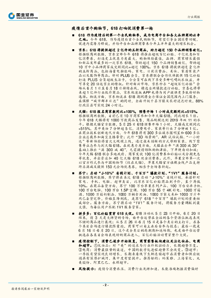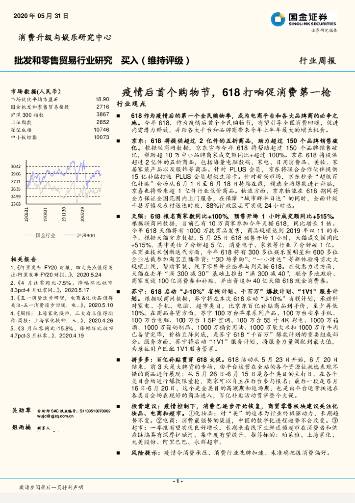 国金证券:批发和零售贸易行业研究周报:疫情后首个购物节,618打响促消费第一枪.pdf