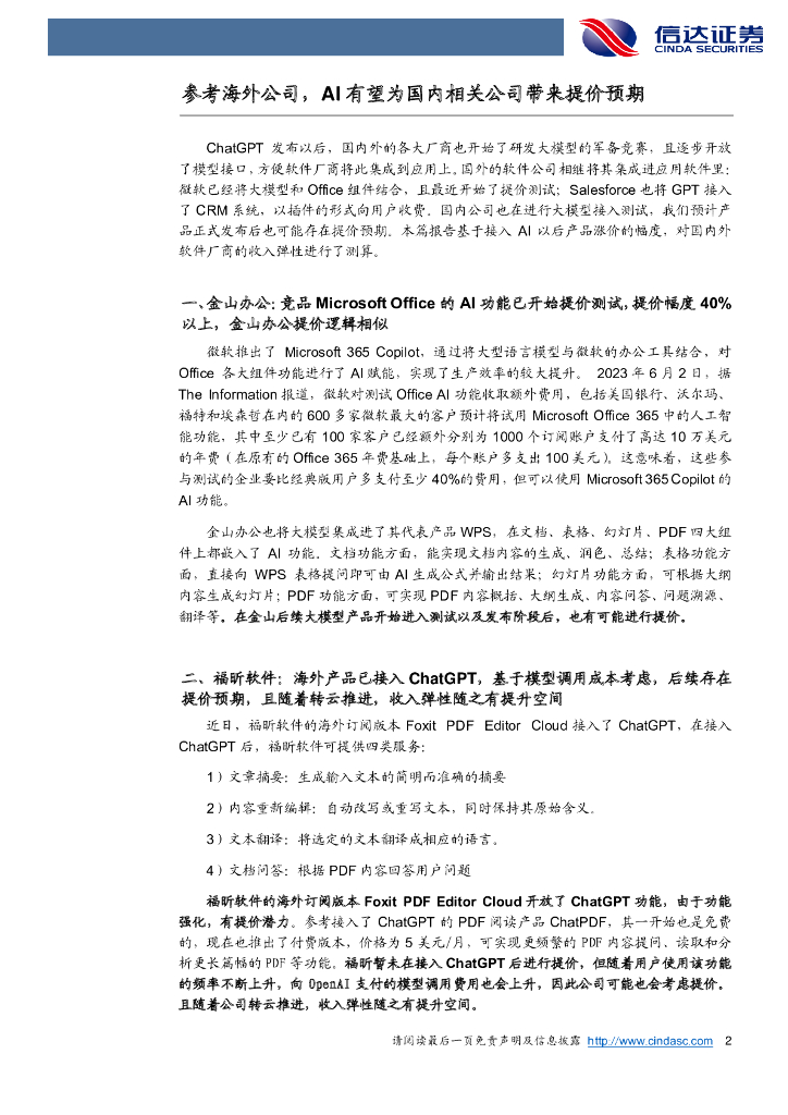 信达证券:计算机行业事项点评:参考海外公司,AI有望为国内相关公司带来提价预期.pdf