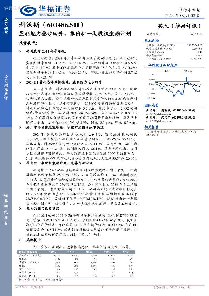 华福证券:科沃斯(603486)-盈利能力稳步回升,推出新一期股权激励计划.pdf