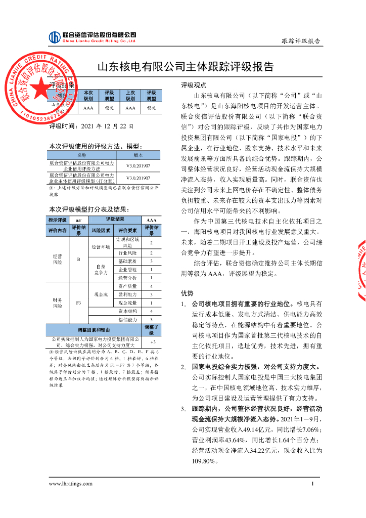 联合资信:山东核电有限公司主体跟踪评级报告.pdf