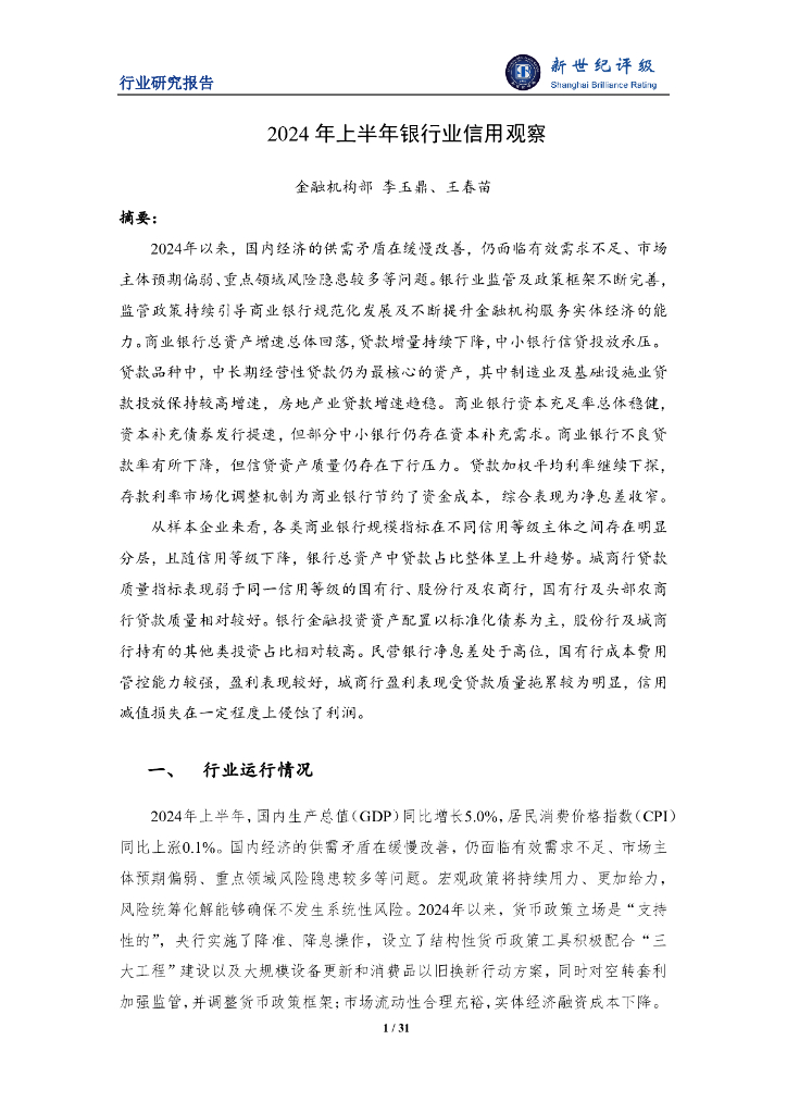 新世纪评级:2024年上半年银行业信用观察报告.pdf