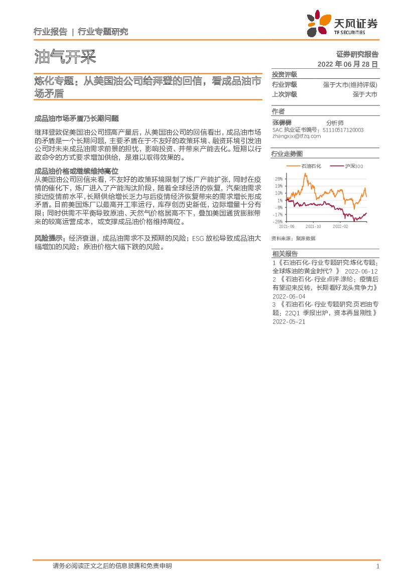 天风证券:油气开采炼化专题:从美国油公司给拜登的回信,看成品油市场矛盾.pdf