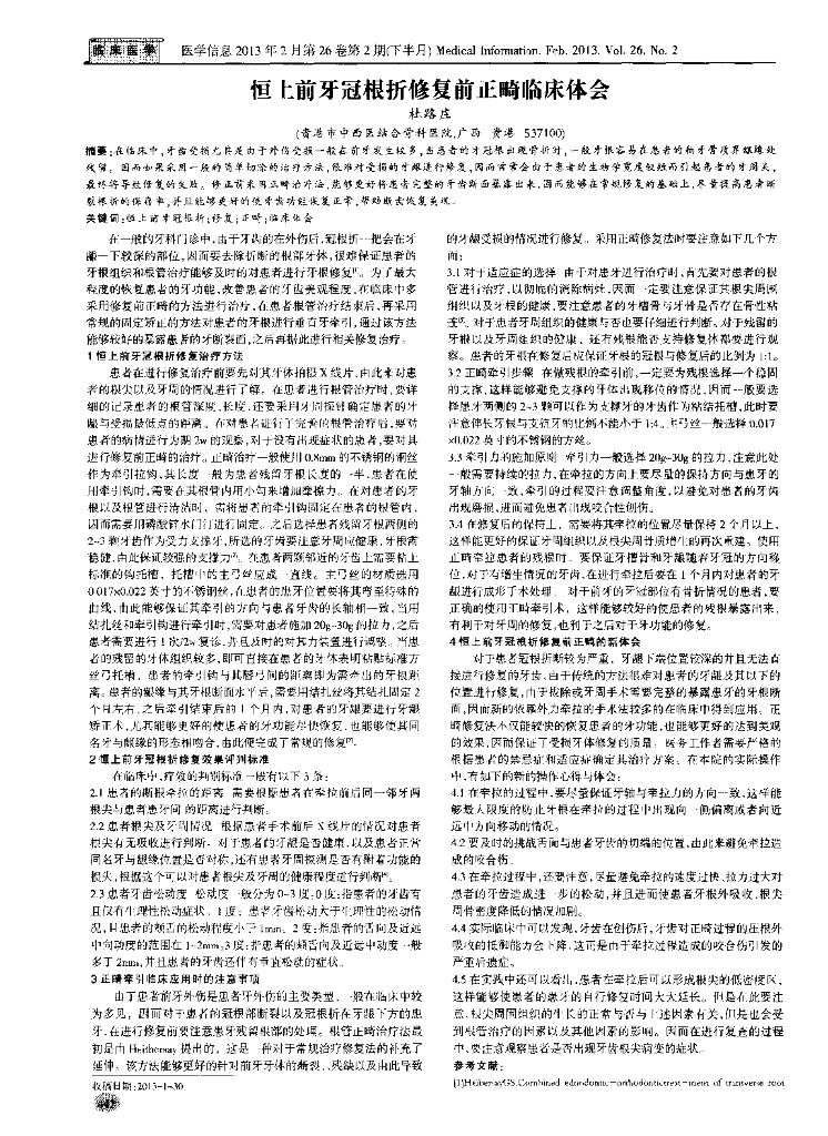 恒上前牙冠根折修复前正畸临床体会.pdf