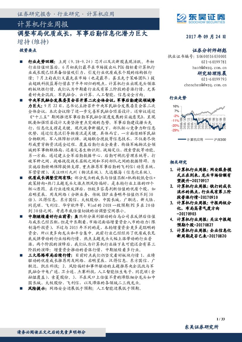 东吴证券:计算机行业周报:调整布局优质成长,军事后勤信息化潜力巨大.pdf