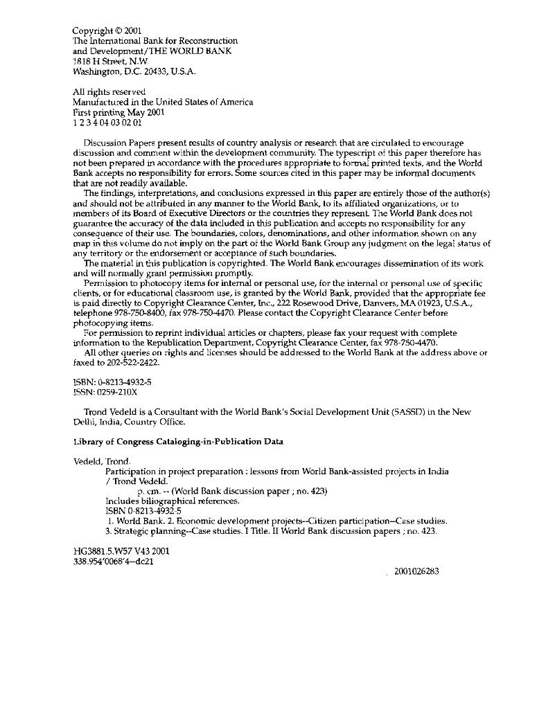 世界银行:世界银行讨论文件-参与项目筹备:世界银行在印度援助项目的经验教训(英文版).pdf