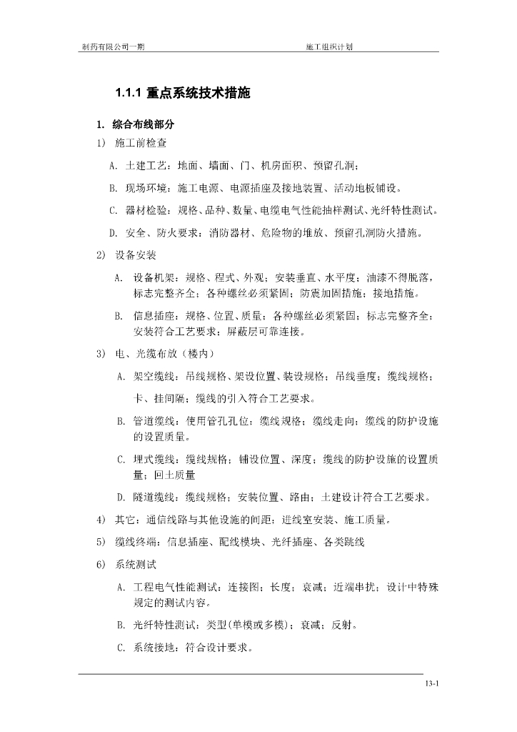 制药企业厂房弱电智能化施工组织设计.doc