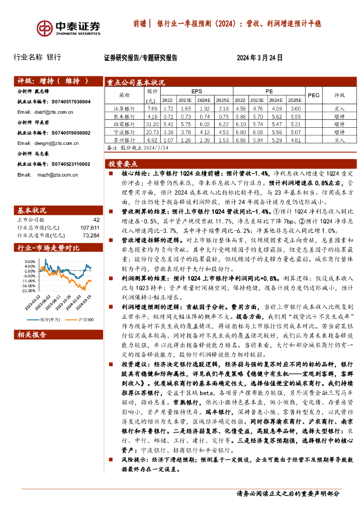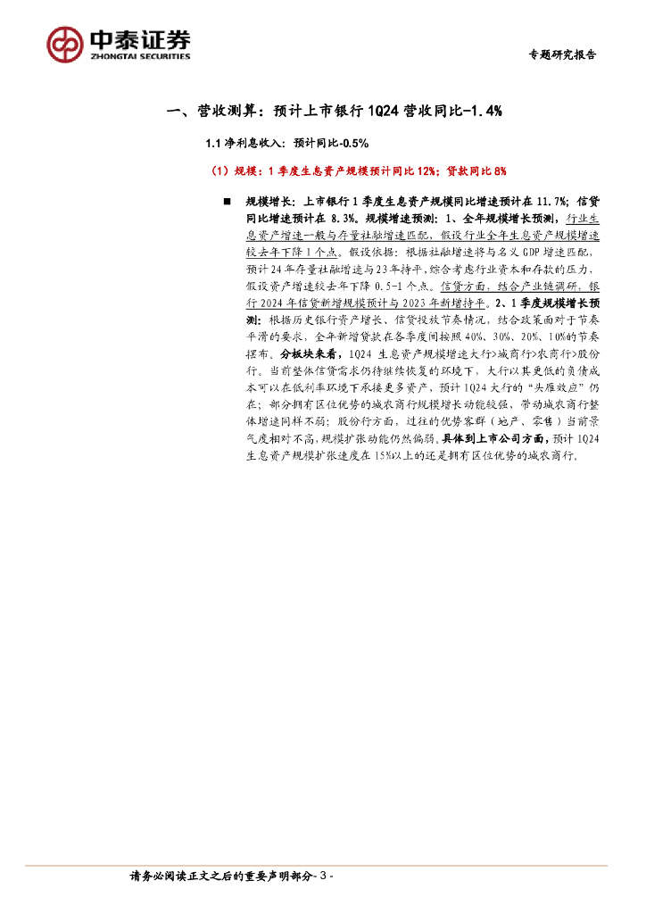 中泰证券:银行业前瞻│银行业一季报预测(2024):营收、利润增速预计平稳.pdf