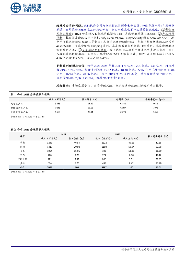 海通国际:安克创新(300866)-1H23收入增20%扣非净利增78%,关注下半年新品放量.pdf