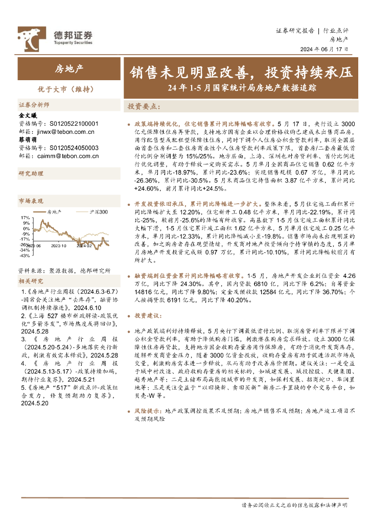 德邦证券:24年1-5月国家统计局房地产数据追踪:销售未见明显改善,投资持续承压.pdf