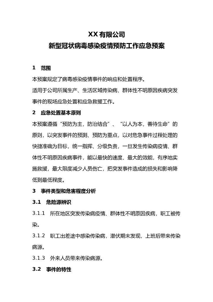 新型冠状病毒肺炎应急预案-公司通用.doc