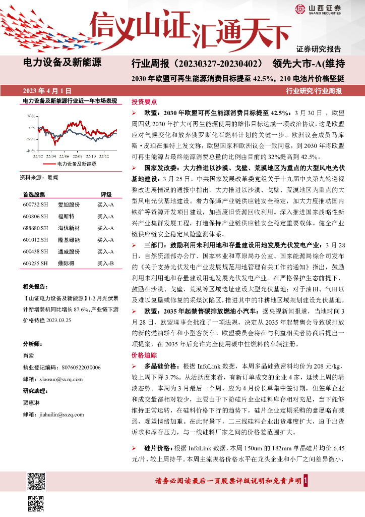 山西证券:电力设备及新能源行业周报:2030年欧盟可再生能源消费目标提至42.5%,210电池片价格坚挺.pdf